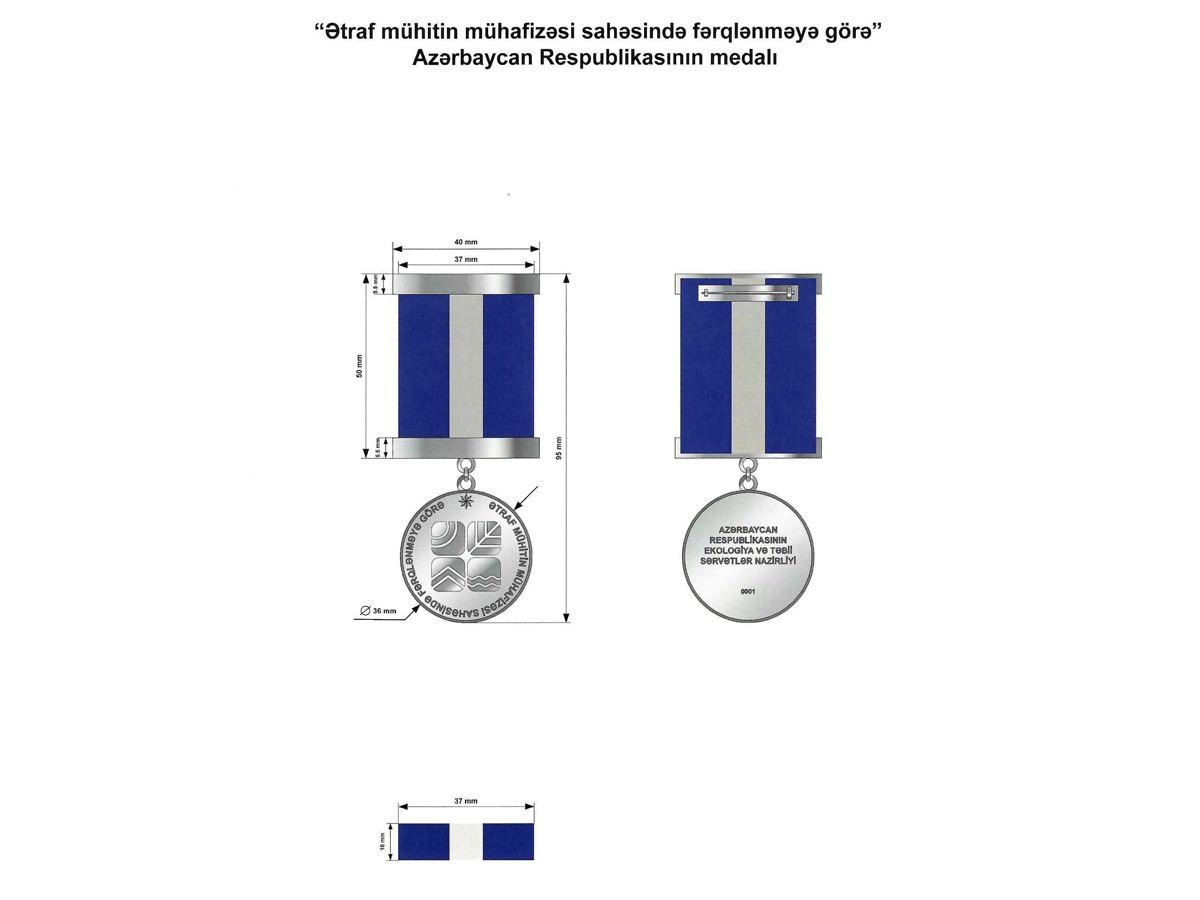 Prezident İlham Əliyev “Ətraf mühitin mühafizəsi sahəsində fərqlənməyə görə” Azərbaycan Respublikasının medalının təsis edilməsi ilə əlaqədar “Azərbaycan Respublikasının orden və medallarının təsis edilməsi haqqında” Azərbaycan Respublikasının Qanununda dəyişiklik edilməsi barədə” Azərbaycan Respublikası 2022-ci il 27 may tarixli 537-VIQD nömrəli Qanununun tətbiqi haqqında Fərman imzalayıb.
