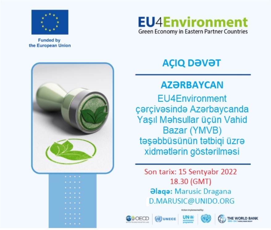 EU4Environment Yaşıl Məhsullar üçün Vahid Bazar (SMGP) təşəbbüsünün icrasında UNIDO-ya dəstək vermək üçün Azərbaycandan təşkilat və qurumlar axtarır.